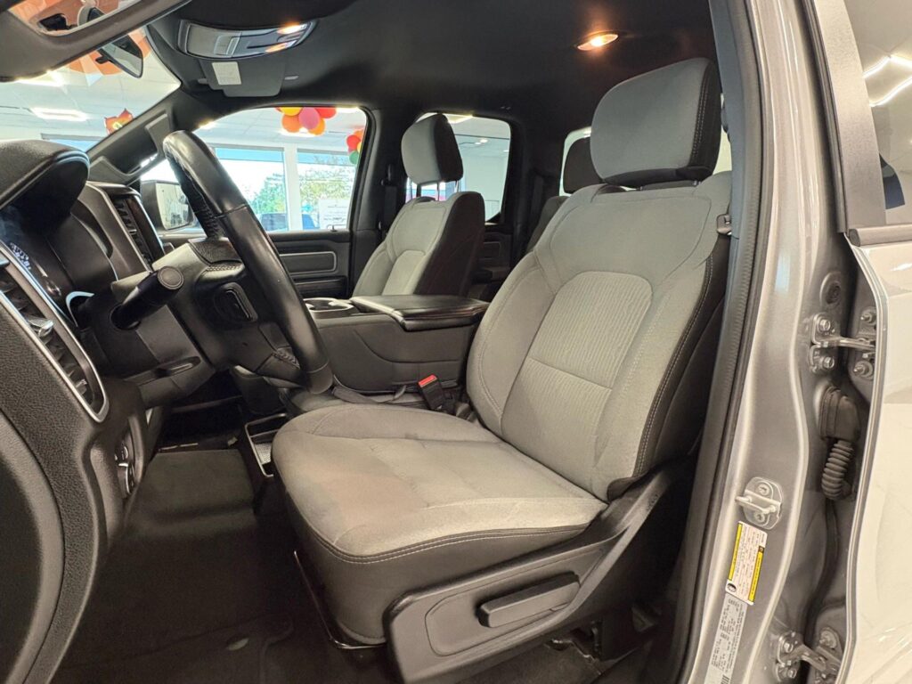 The used RAM 1500 blends strong pulling with cozy rides. It tows up to 12,750 pounds, perfect for trailers or boats. Yet it sips fuel at 20 MPG in the city and 25 on highways. Families love the roomy cab with seats for five and soft cushions. Tech like touch screens and backup cameras make driving easy.